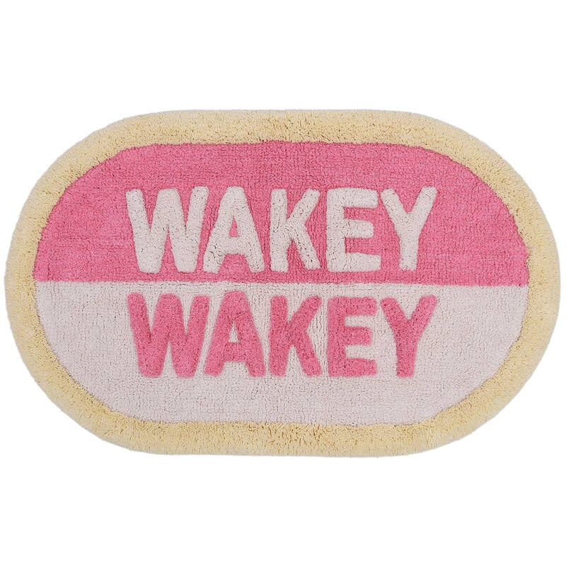 Begin je dag met een glimlach met deze vrolijke “Wakey Wakey” badmat. De speelse tekst en frisse kleuren geven je badkamer een energieke en moderne uitstraling. Dankzij het unieke design is deze badmat niet alleen praktisch, maar ook een leuke eyecatcher.