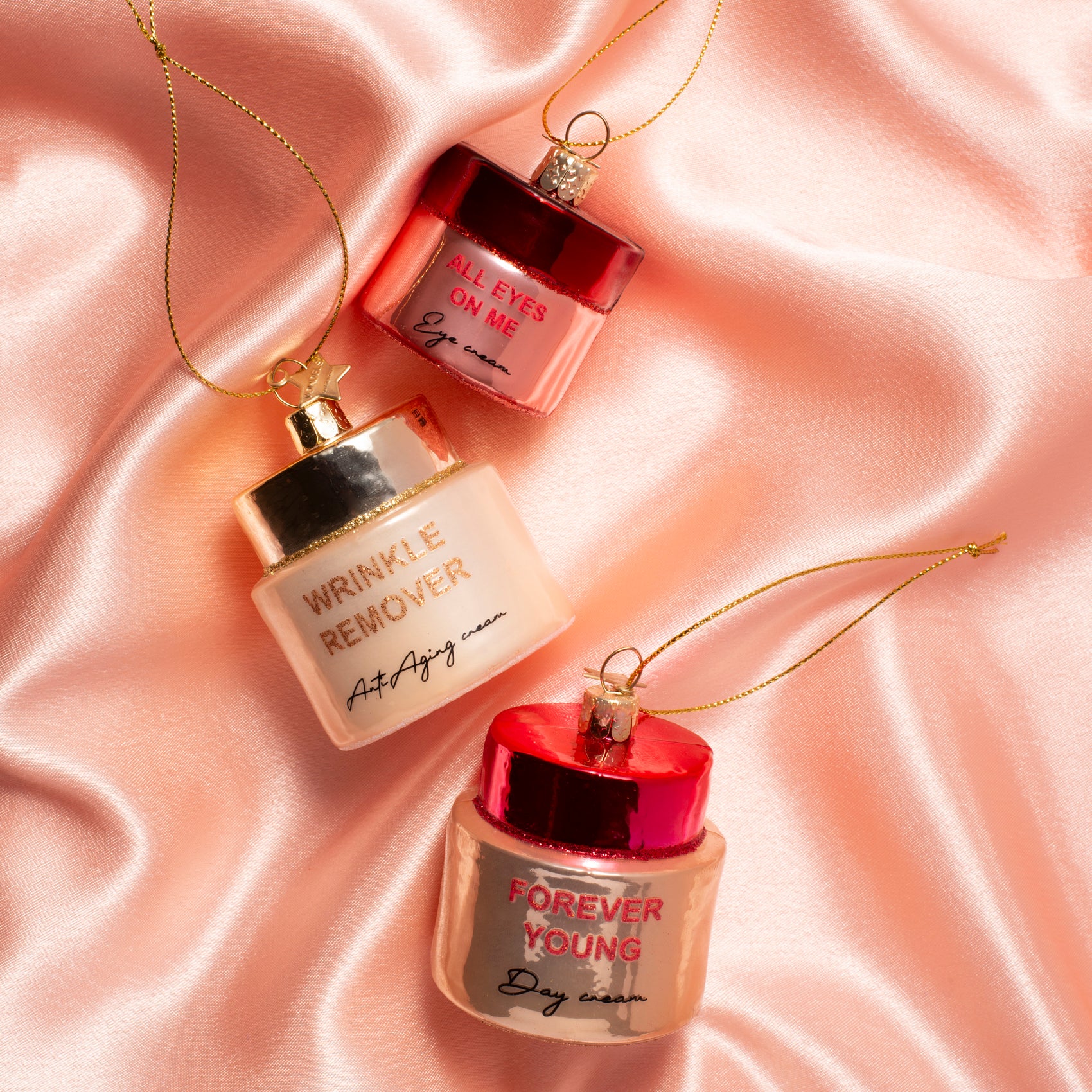 Met zijn elegante crème- en roodtinten en het speelse design in de vorm van een eye cream potje is dit ornament dé eyecatcher in jouw boom. Perfect voor beautylovers, interieurliefhebbers en iedereen die houdt van originele kerstdecoratie met een knipoog.