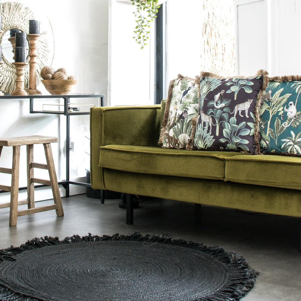 De zachte fluwelen stof (polyester) voelt heerlijk aan en zorgt voor een warme, comfortabele sfeer op je bank, bed of fauteuil. De combinatie van groentinten, dierenprint en goudaccenten maakt dit kussen een echte blikvanger in elk interieur – van boho chic tot hotel luxe.