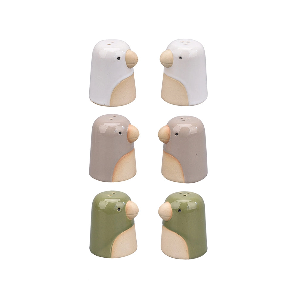 Dit papegaai zout- en peperstel is een vrolijke toevoeging aan iedere tafel. De zachte vormen en rustige kleuren geven deze set een speelse maar stijlvolle uitstraling. Perfect voor liefhebbers van een jungle, botanisch of Scandinavisch interieur met een knipoog.